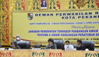 PEKANBARU, Satuju.com - DPRD Pekanbaru menggelar Rapat Paripurna Penjelasan Pemerintah Tentang 6 Ranperda, Rabu (13/10/2021). Selanjutnya, -