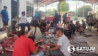 Bengkalis, Satuju.com - Masjid Nurul Sa'adah melaksanakan penyembelihan hewan qurban sebanyak 2 -