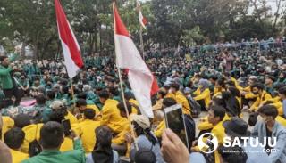 Pekanbaru, Satuju.com - Ribuan Mahasiswa Riau menggelar aksi di depan Kantor DPRD Riau. Massa -