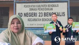 Bengkalis, Satuju.com - Fadli Ariansyah dan Muhammad Bintang siswa kelas IV SD Negeri 23 Bengkalis -