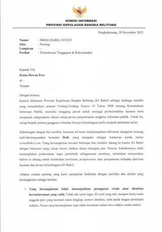 KI Babel Minta Dewan Pers Tegas Verifikasi Oknum Mengaku Wartawan GetarBabel.com