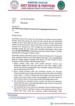 Hak Jawab Kantor Hukum Asep Ruhiat & Partners atas Pemberitaan Satuju.com