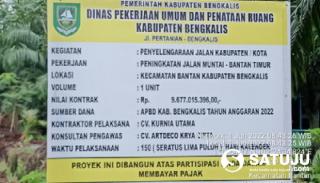 Bengkalis, Satuju.com - Pelaksanaan pekerjaan proyek Peningkatan Jalan Muntai-Bantan Timur yang