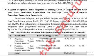 Buku Covid-19 Tingkat SD & SMP Disdikpora Kampar Tak Sesuai Ketentuan Pengadaan Barang Pemerintah