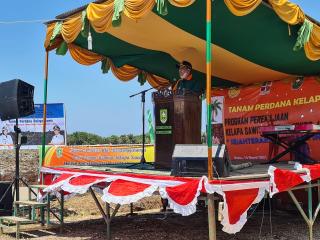 Bengkalis - Wakil Bupati Bengkalis Bagus Santoso melakukan Tanam Perdana Program Peremajaan Kelapa