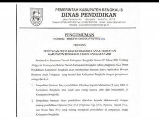 Pemkab Bengkalis Melalui Disdik Bengkalis Umumkan Penerimaan Beasiswa Tahun Anggaran 2022