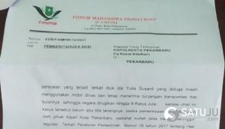 Pekanbaru, Satuju.com - Sehubungan kasus Ida Yulia Susanti yang diduga menggunakan mobil dinas