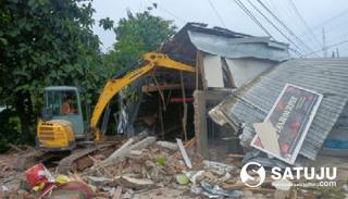 Belasan Bangunan Liar Tanpa Ijin Dirobohkan Tim Gabungan Satpol PP