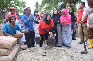 MANDAU - Bupati Bengkalis Kasmarni ikut bersama warga melakukan aksi gotong royong memperindah -