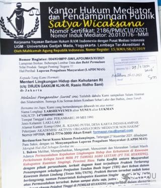 Setelah ke Polda Riau, PT Tamora Agro Lestari Hari ini Resmi Dilaporkan ke GAKKUM LHK RI