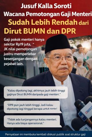 Jusuf Kalla Kritik Rencana Pangkas Gaji Menteri: Picu Kesenjangan Baru