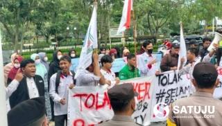 SATUJU.COM PEKANBARU - Di tengah guyuran hujan, Kesatuan Aksi Mahasiswa Muslim Indonesia (KAMMI)