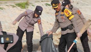 Bersihkan Pantai, Polres Bengkalis Lakukan Upaya Jaga Kebersihan dan Keindahan Lingkungan