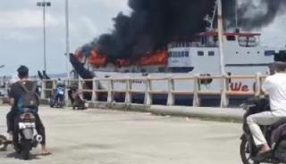 Bengkalis, Satuju.com - Kapal Motor Penyebrangan (KMP) Permata Lestari I, terbakar di Pelabuhan