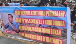 Ratusan Massa GPMPPK Bentang Spanduk di Depan Kejati Riau Berisikan Wajah SF Hariyanto dan Kerugian Negara