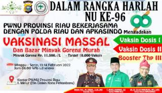 Vaksinasi Massal Serta Pasar Murah Minyak Goreng, PWNU Riau Bersama Polda Riau dan APKASINDO