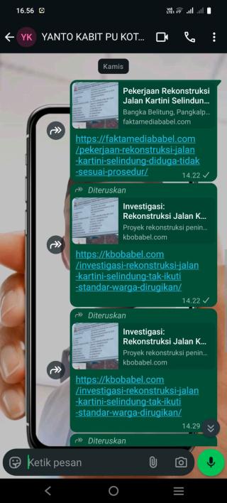 Proyek Jalan Kartini Selindung Sarat Masalah, Kabid PUTR Kota Pangkalpinang Pilih Blokir Wartawan