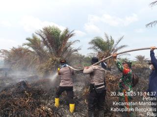 Polres Bengkalis Lakukan Pemadaman dan Pendinginan Karlahut di Desa Buluh Apo