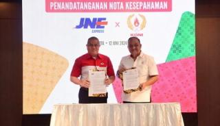 JAKARTA, Satuju.com - JNE Express dan Komite Olahraga Nasional Indonesia (KONI) menandatangani Nota -