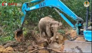 MENGHARUKAN !! Induk Gajah Seruni Menunggu Anaknya Rimba yang Tergelincir di Galian