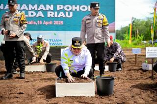 Kapolda Riau dan Bupati Bengkalis Tanam Pohon Geronggang untuk Atasi Karhutla