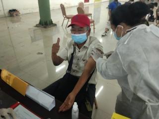 Pekanbaru - Ketua Umum Aliansi Pewarta Pertanian Indonesia (APPI) Alexander Pranoto suntik Vaksin