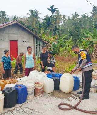 Bhabinkabtibmas Desa Pambang Salurkan Air Bersih, Warga : Terimakasih Pak Haris