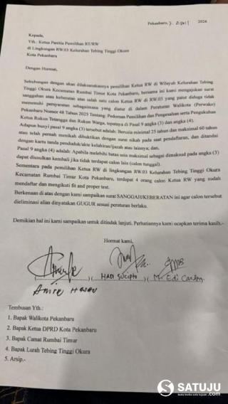 Pekanbaru, Satuju.com – Proses pemilihan Ketua RW di RW 03 Kelurahan Tebing Tinggi Okura, -