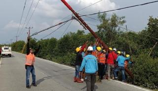Empat Tiang Listrik Tumbang di Jalan, PT PLN Rayon Bengkalis Sigap Turunkan Belasan Tim Teknis